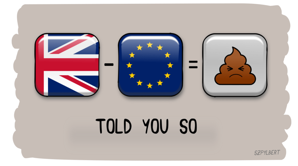 October 10, 2022November 18, 2022 Szpylbert Szpylbert, the king of subtle Still bitter about Brexit and what it has brought. Great article here. Brexit really is the skid mark on the toilet bowl of English history. Share this: Share on X (Opens in new window) X Share on Facebook (Opens in new window) Facebook Like Loading...